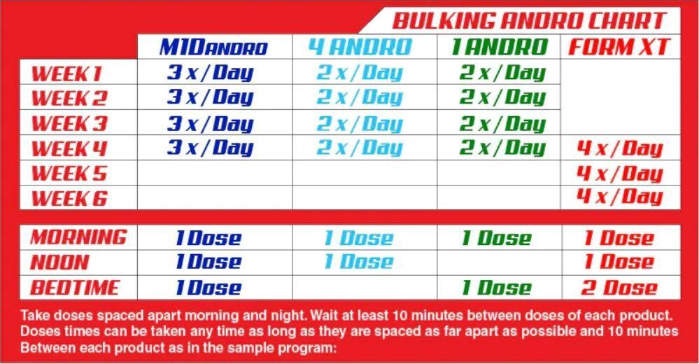 Week 1-4: M1D Andro Caplets 3X/Day, 1-Andro 1X/Day, 4-andro 2X/Day
