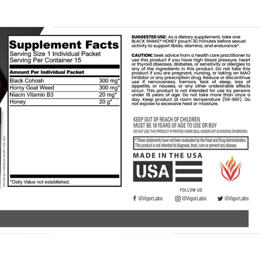 Vigor Labs Black Snake Honey is a supplement that is made with a unique blend of honey, black cohosh